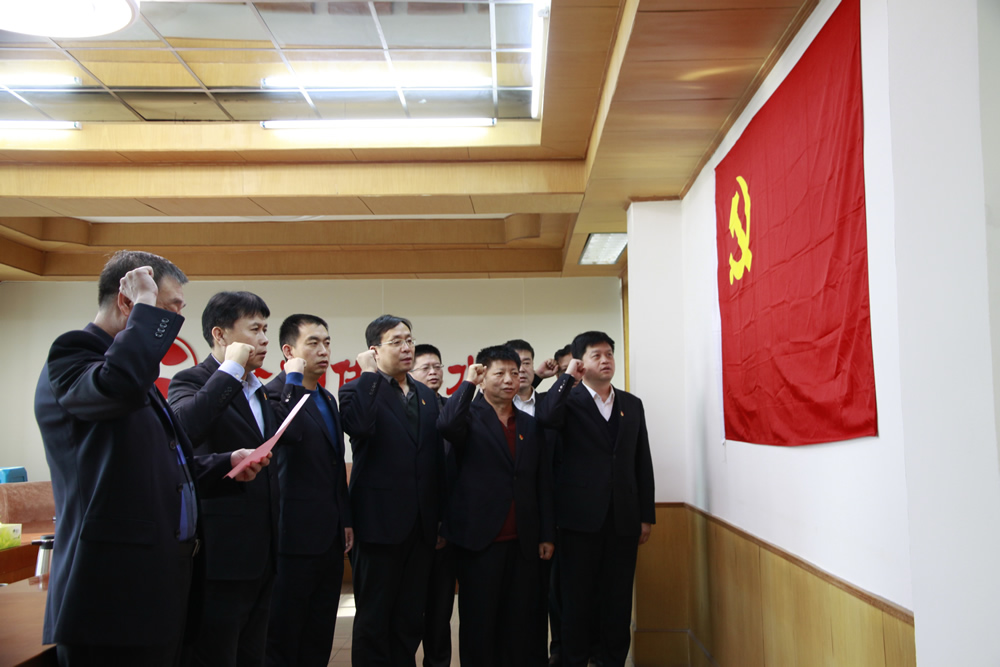 會(huì)后,集團(tuán)黨委中心組成員共同面向黨旗,舉起右拳一起重溫入黨誓詞,鏗鏘有力的莊嚴(yán)宣誓聲響徹會(huì)議室。宣誓完畢后,黨委書記強(qiáng)調(diào),作為中心組成員,我們要以身作則、率先垂范,牢記入黨誓詞,經(jīng)常加以對(duì)照,堅(jiān)定不移,從自身做起,全面落實(shí)從嚴(yán)治黨要求,以實(shí)際行動(dòng)貫徹好黨的十九大精神。